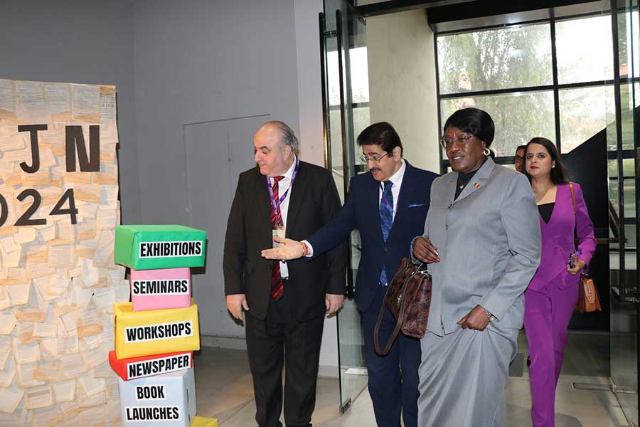 Get an exclusive glimpse into the President’s office at the 12th Global Festival of Journalism Noida as Sandeep Marwah welcomes esteemed guests. Explore captivating images capturing moments of exchange and collaboration, showcasing the spirit of the festival’s leadership and camaraderie.